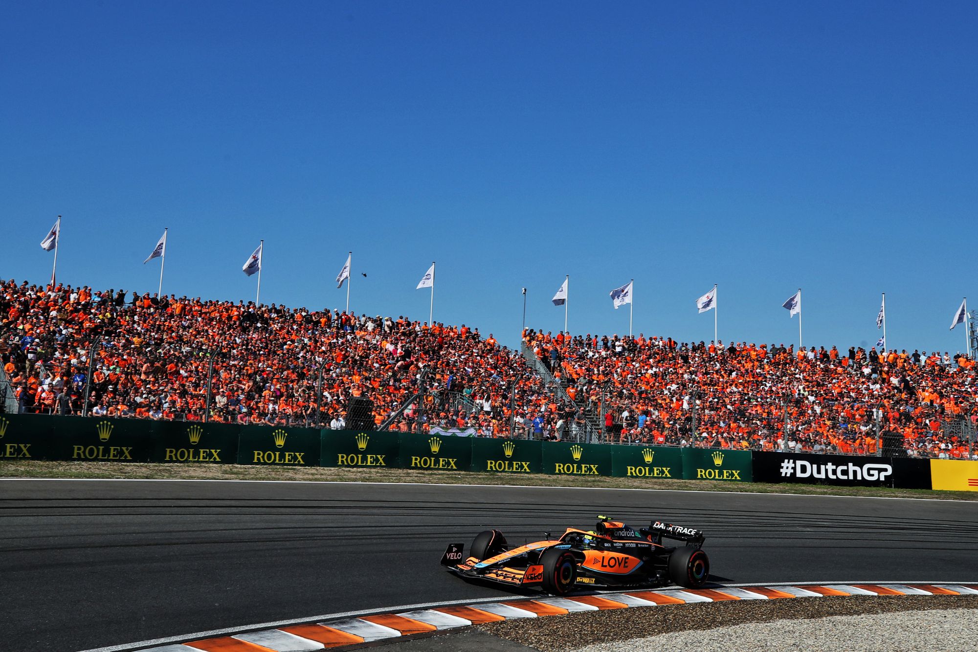 The Dutch Grand Prix weekend runs across three days. Friday features sprint qualifying and the first practice session. Saturday has the sprint race and Grand Prix qualifying. Sunday is race day. Formula 2 and the Porsche Supercup also run across all three days. The full schedule is usually published on formula1.com around four weeks before the Grand Prix.